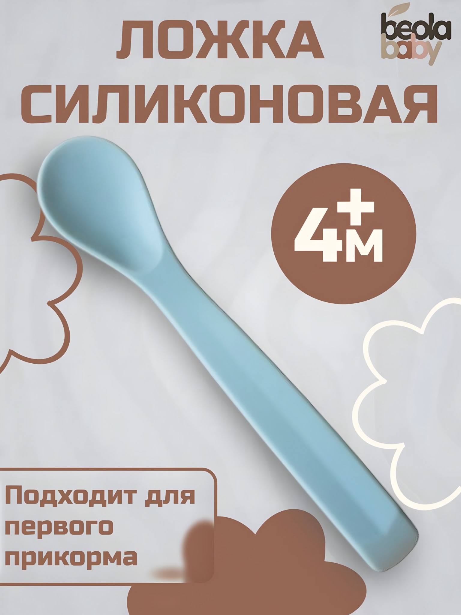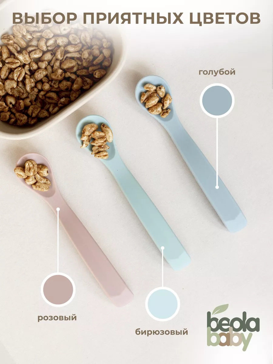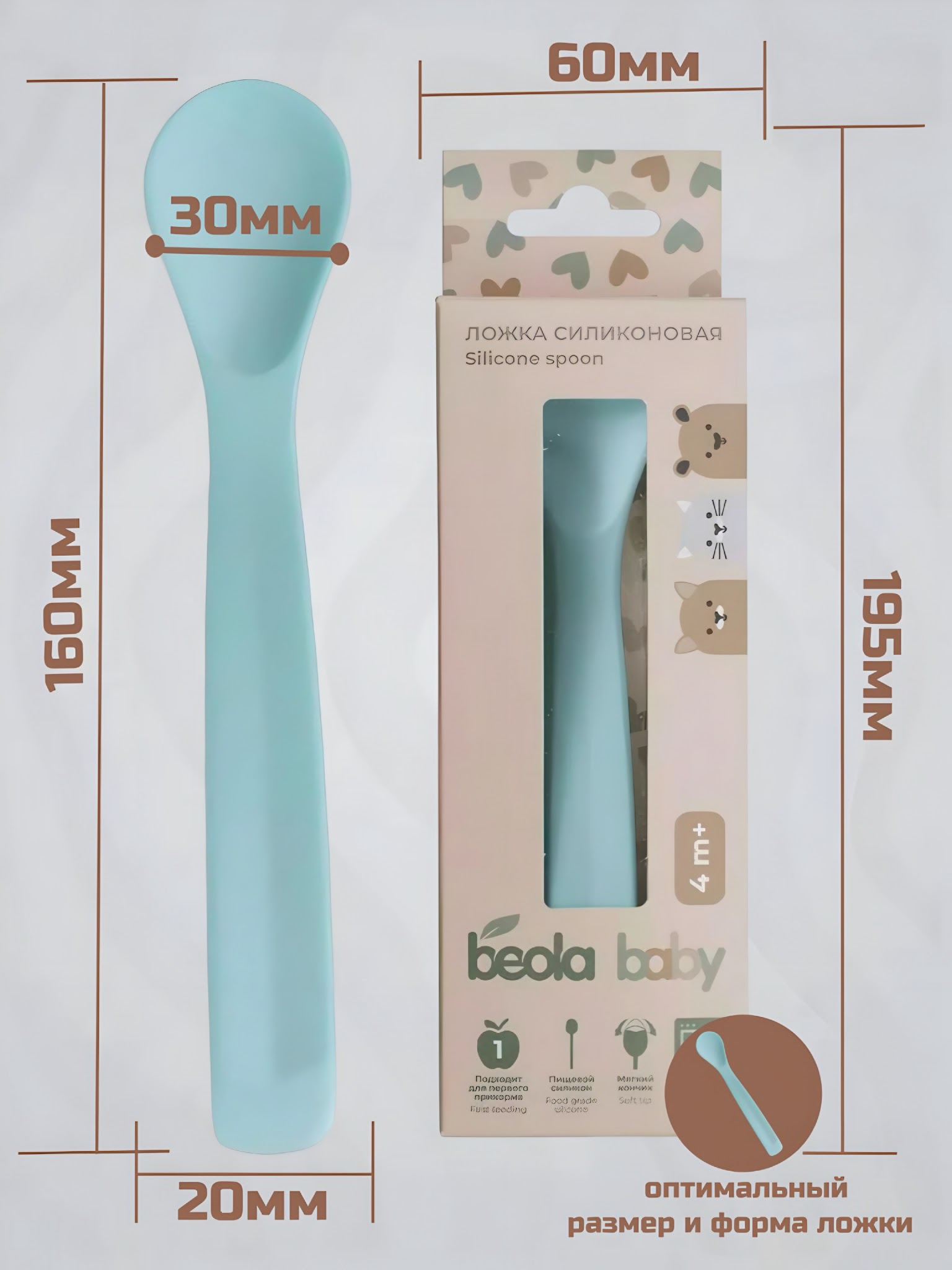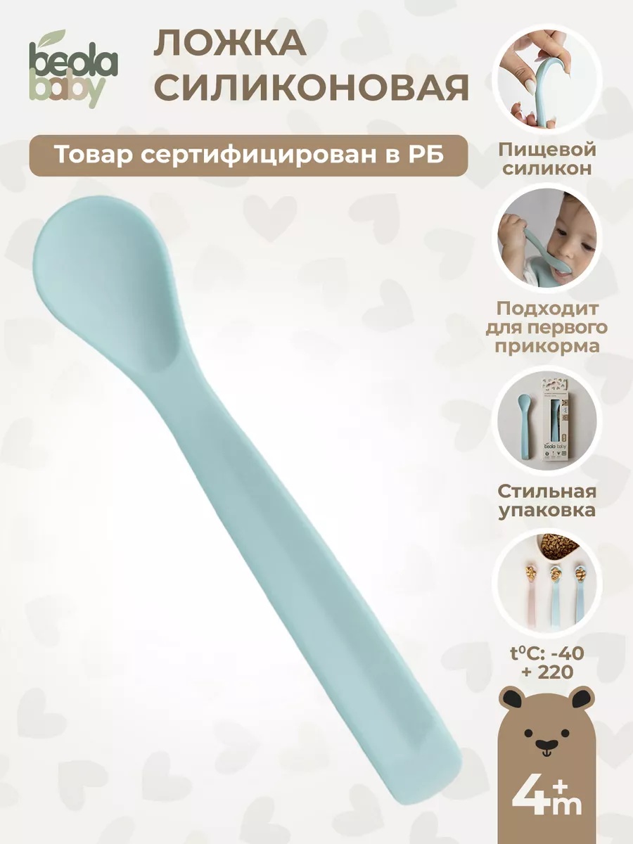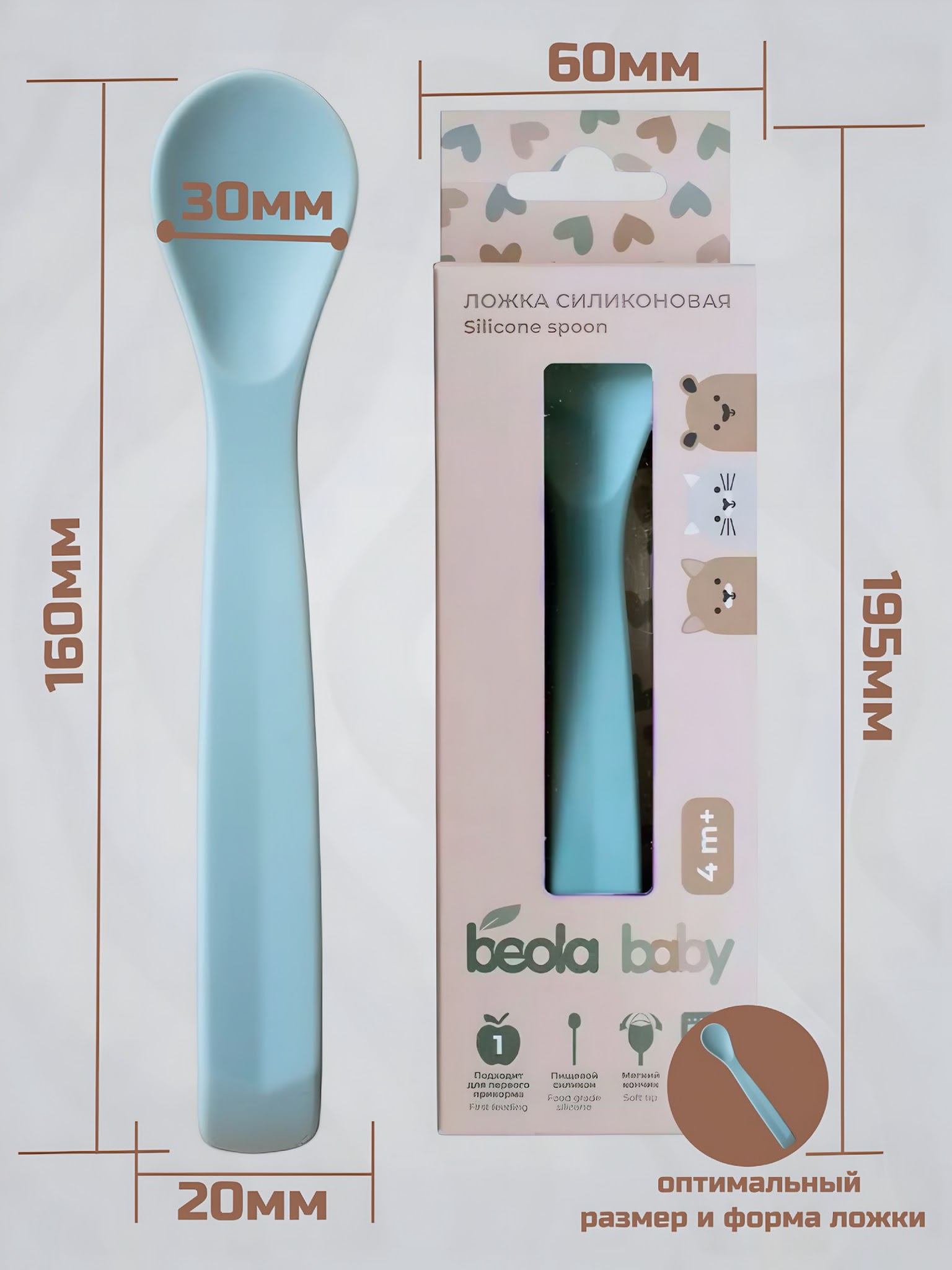 BEOLA BABY ЛОЖКА СИЛИКОНОВАЯ с мягким кончиком (длинная ручка), 4+ мес. (ГОЛУБОЙ, РОЗОВЫЙ, БИРЮЗОВЫЙ)
