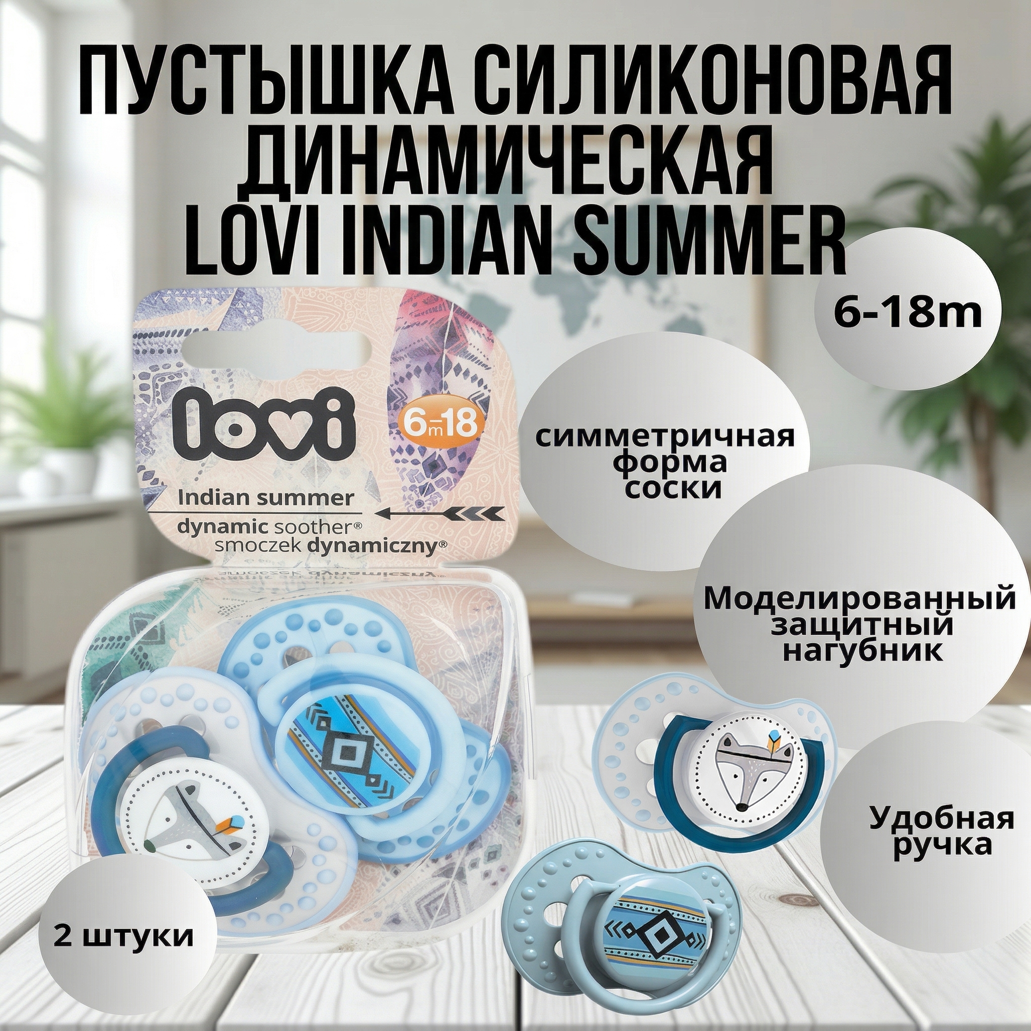 Пустышка силиконовая динамическая LOVI Indian summer , 6-18 мес. , 2 шт.