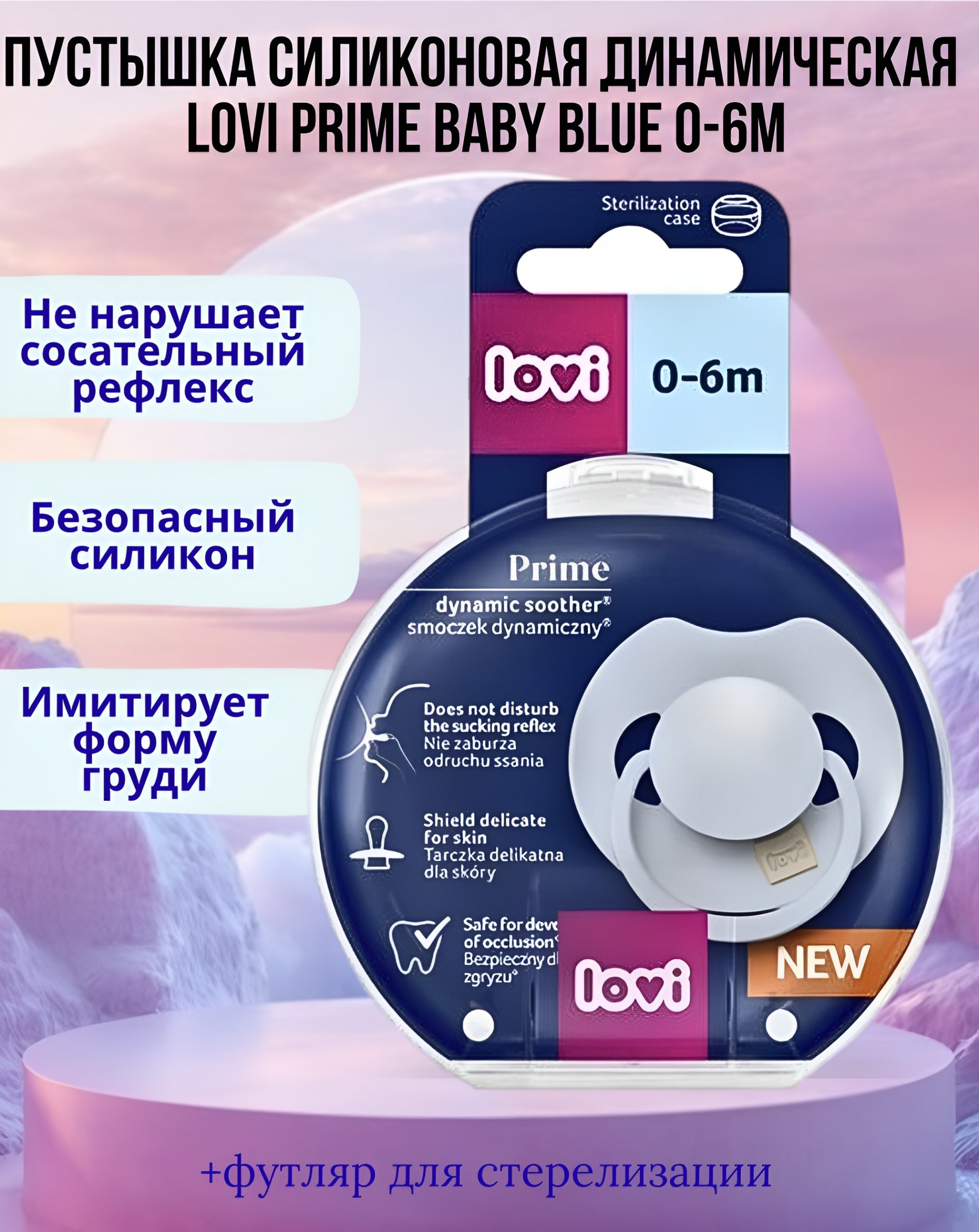 Пустышка силиконовая динамическая LOVI PRIME Baby Blue , 0-6 мес. , 1 шт. , футляр для стерилизации