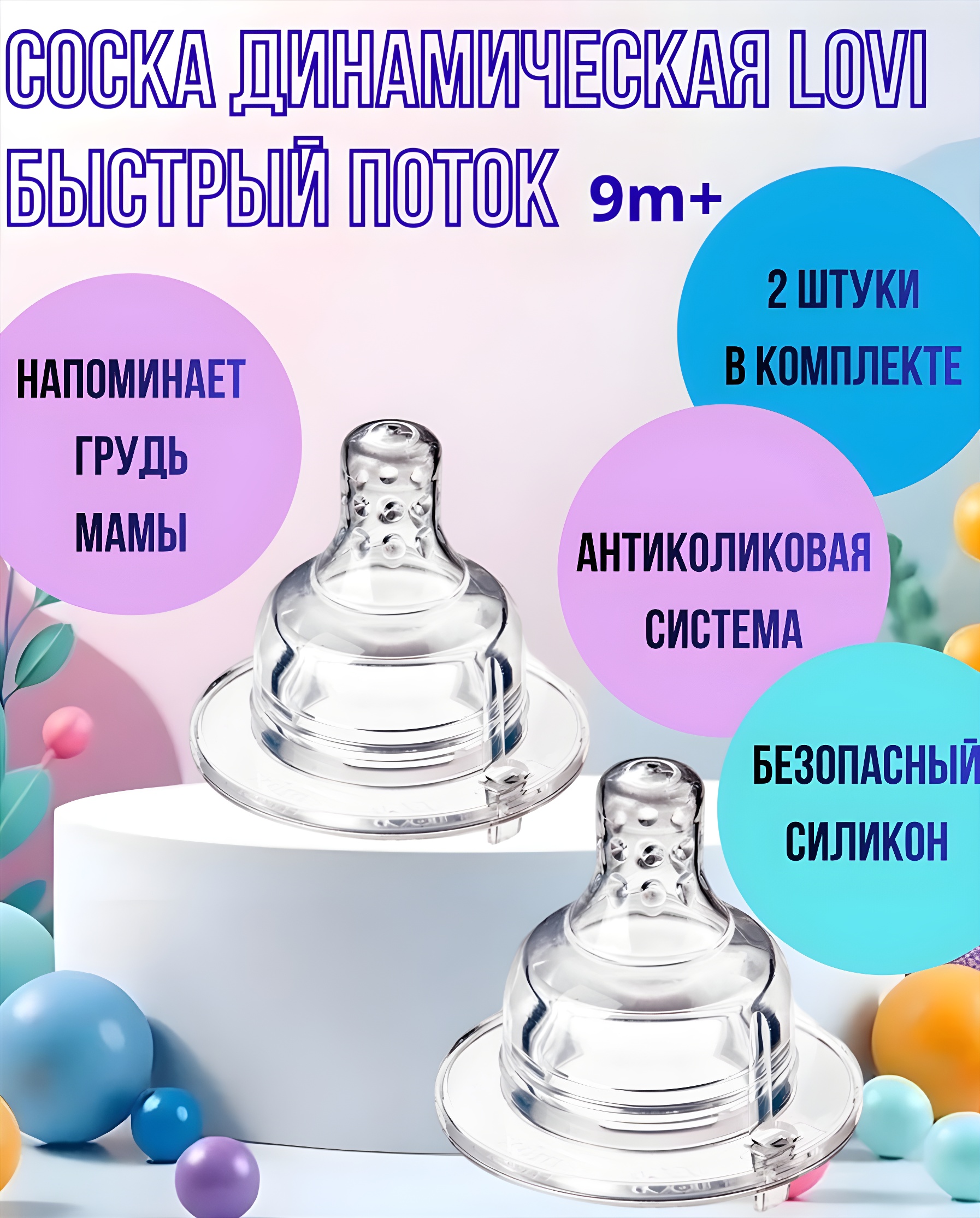 Соска динамическая LOVI, быстрый поток, 9+, 2 шт.